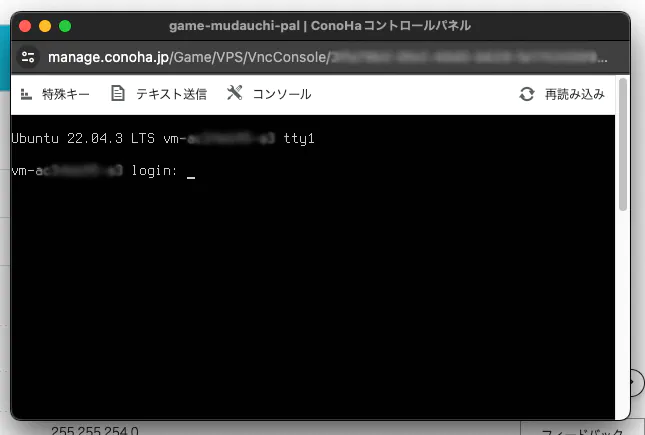 | コンソール | コマンドを打ち込むためのSSHを起動します。ConoHa仕様のブラウザ版になり、多少バグっぽい挙動があります。 ※Macだけかもしれません |