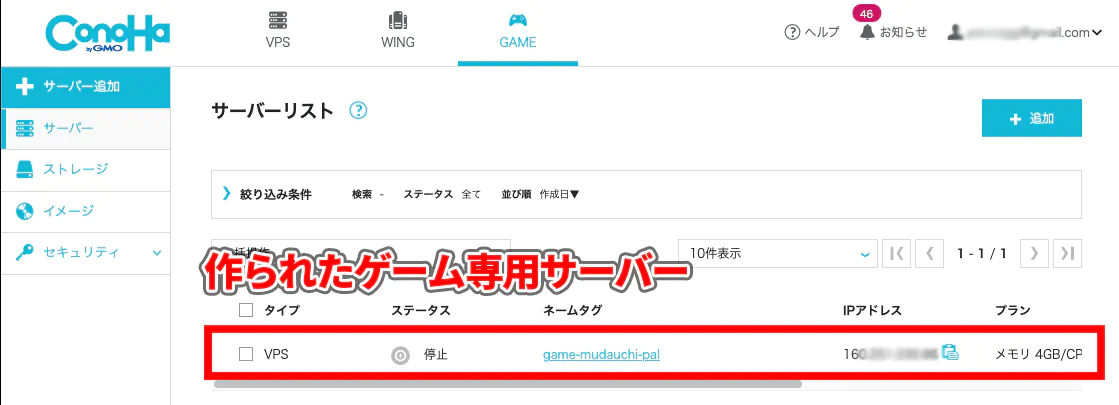 サーバーリストの中に作成したサーバーが追加されます。