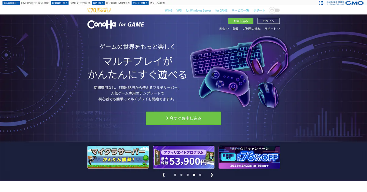 第2位はGMOが母体の『ConoHa for GAME』です!