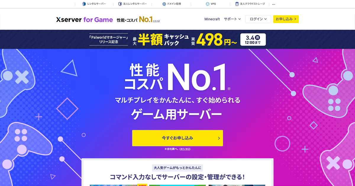 全体的に、Xserver for Gameは高性能なゲーム専用サーバーを求めている方や、簡単にマルチプレイ環境を構築したい方にとって魅力的な選択肢と言えます。
